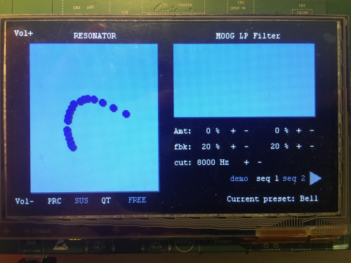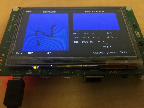 Modal synthesizer, STM32F7 development board, touchscreen control.